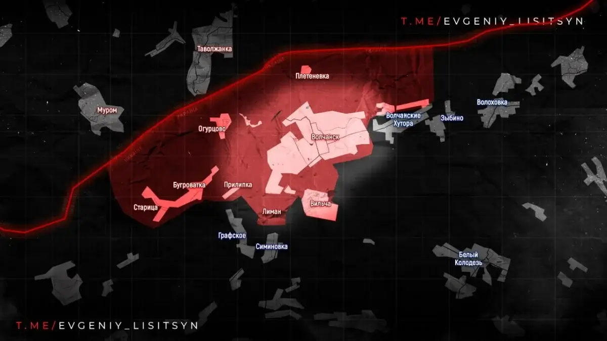 - Харьковская область: Идет зачистка села Зелёное и штурм Волчанских Хуторов. В лесных массивах у Старицы и Симиновки российские подразделения продвинулись на глубину до 350–500 метров. Украинское командование вынуждено бросать в бой необстрелянные резервы ТРО и подразделения нацгвардии «Хартия» для стабилизации фронта.