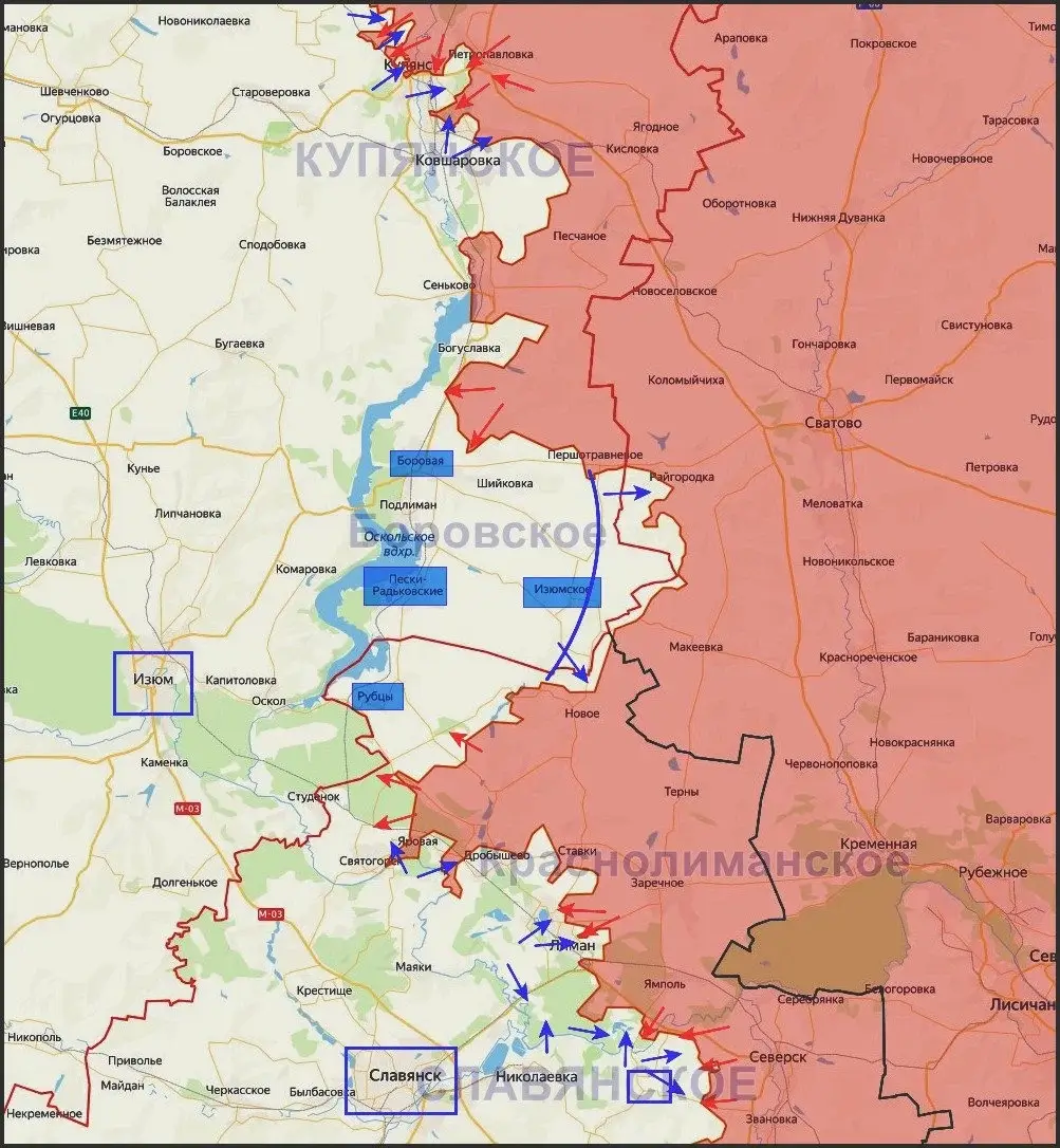 Северский выступ. Армия России планомерно "закрывает карман" между Никифоровкой и Привольем, приближаясь к Фёдоровке Второй. Это движение создает предпосылки для выхода к ключевому населенному пункту Рай-Александровка.