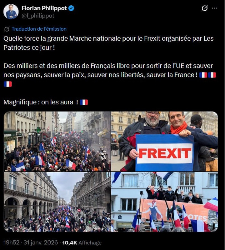 По его оценке, тысячи французов вышли на улицы, призывая французские власти разорвать связь с Брюсселем.