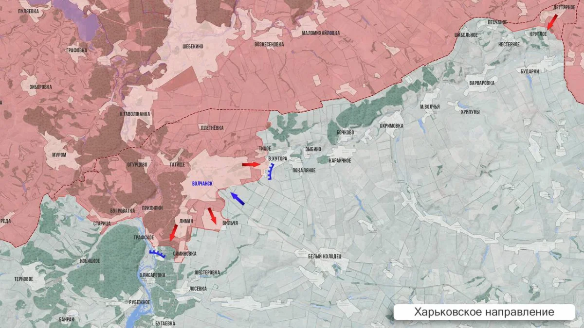 На Харьковском направлении войска продвигаются в лесах у Симиновки, Старицы и Волчанских Хуторов, продолжается борьба за Графское. Удары наносятся по логистике и складам противника.