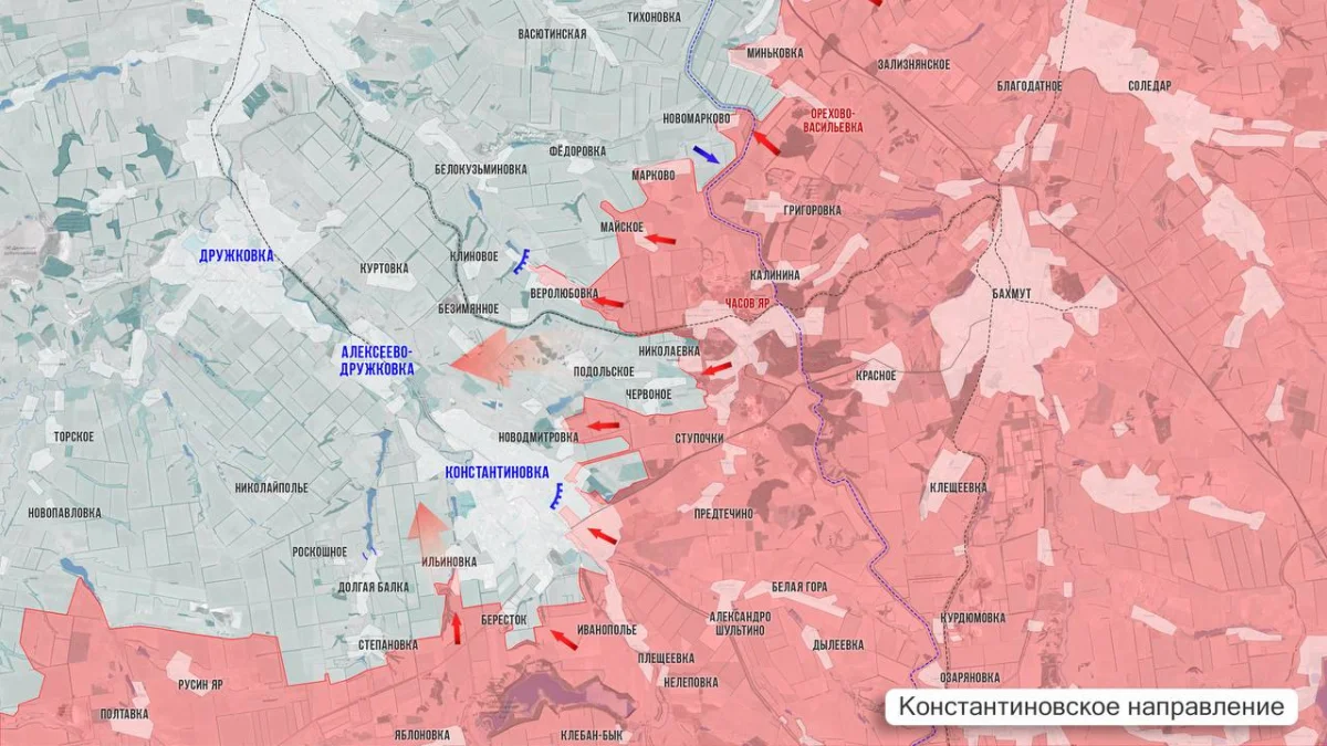 Из самой Константиновки поступают сведения о продвижении российских подразделений в восточной части города: заняты новые позиции в районе одной из подстанций, что даёт возможность расширять контроль над промышленной инфраструктурой и узлами снабжения.