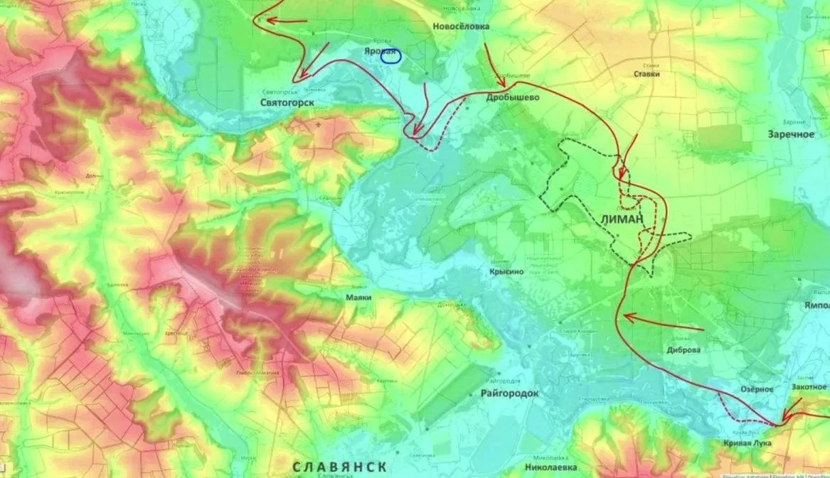 На Лиманском направлении подразделения 25-й армии вошли в городскую черту с нескольких сторон. Бои идут уже в застройке. Южнее, в районе Святогорска, части 20-й армии пытаются создать условия для последующих действий у реки Северский Донец.
