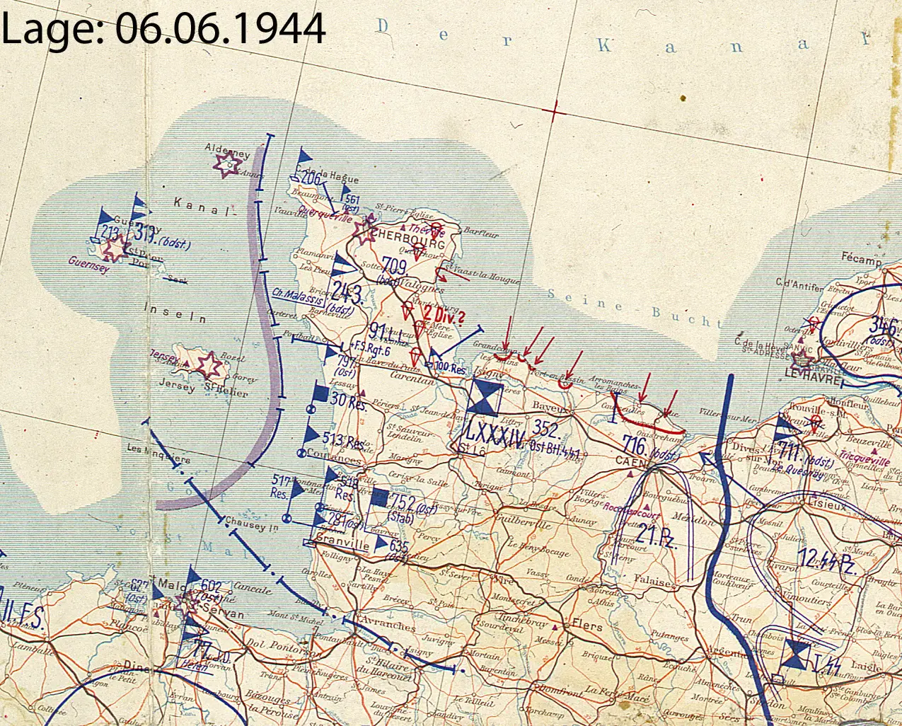 Расположение немецких сил в момент высадки в Нормандии 06.06.1944
