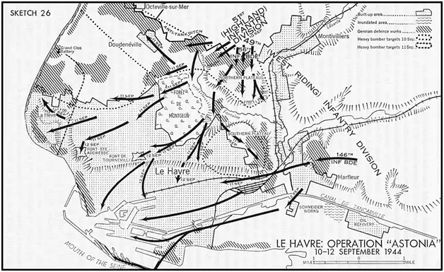 10-12 сентября 1-й британский армейский корпус (три британских пехотных дивизии и канадский мотострелковый полк) провел операцию «Астония» (Operation Astonia) по захвату важного французского порта Гавр, расположенного на восточном побережье бухты Сены в устье одноименной реки.