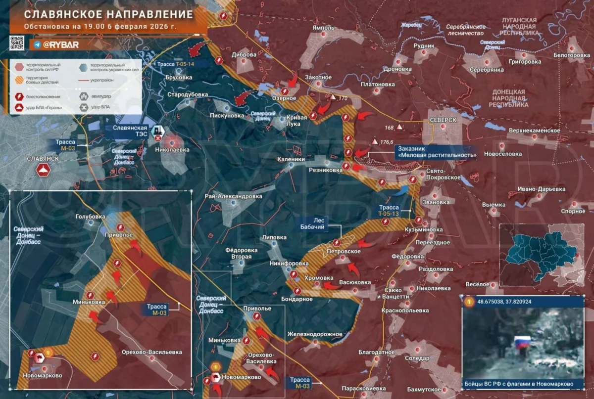 AP © Минобороны РФ К утру 7 февраля 2026 года обстановка на линии боевого соприкосновения характеризуется расширением географии активных наступательных действий ВС РФ. В то время как медийное внимание приковано к тяжелым городским боям в Константиновке, российские войска методично взламывают оборону противника в лесных массивах Сумской и Харьковской областей, а также развивают успех на Запорожском и Краснолиманском направлениях.