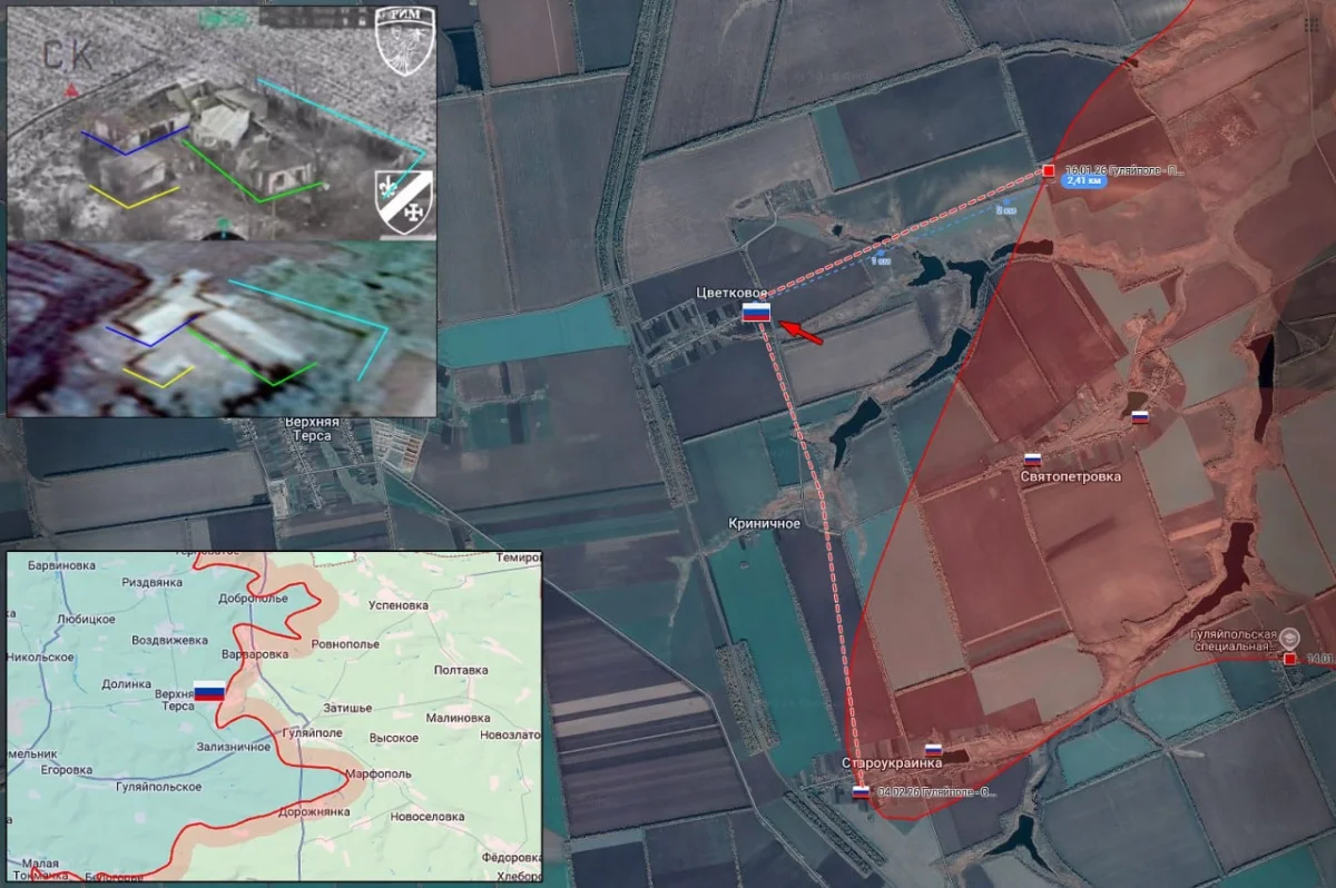 По данным военкоров, подразделения ВС РФ вошли на окраину населенного пункта Цветковое. Это село является ключевой точкой, расположенной за основной линией обороны врага по реке Гайчур.