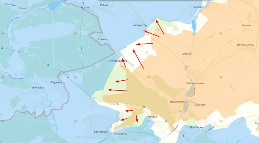 Краснолиманский участок. Здесь фиксируются ожесточенные контактные бои. В районе Александровки ВС РФ навязывают противнику свою волю, не давая ВСУ стабилизировать линию фронта. Особо отмечается продвижение наших групп в лесных массивах у Святогорска и Ставков.