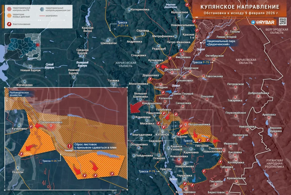1. Петропавловка и Подолы: Подтвержден контроль ВС РФ (геолокация от 9 февраля). Ведется зачистка от остаточных групп противника.