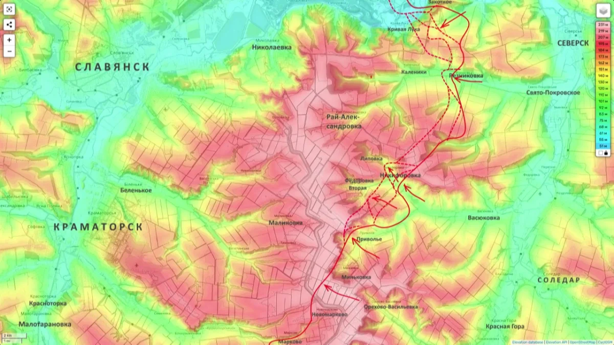 На Константиновском направлении ВС РФ продолжают методично «прогрызать» оборону. Идет зачистка лесопосадок между Новодмитровкой и Константиновкой. Упорные бои зафиксированы в районах Степановки, Ильиновки и на юго-западных окраинах самого города.