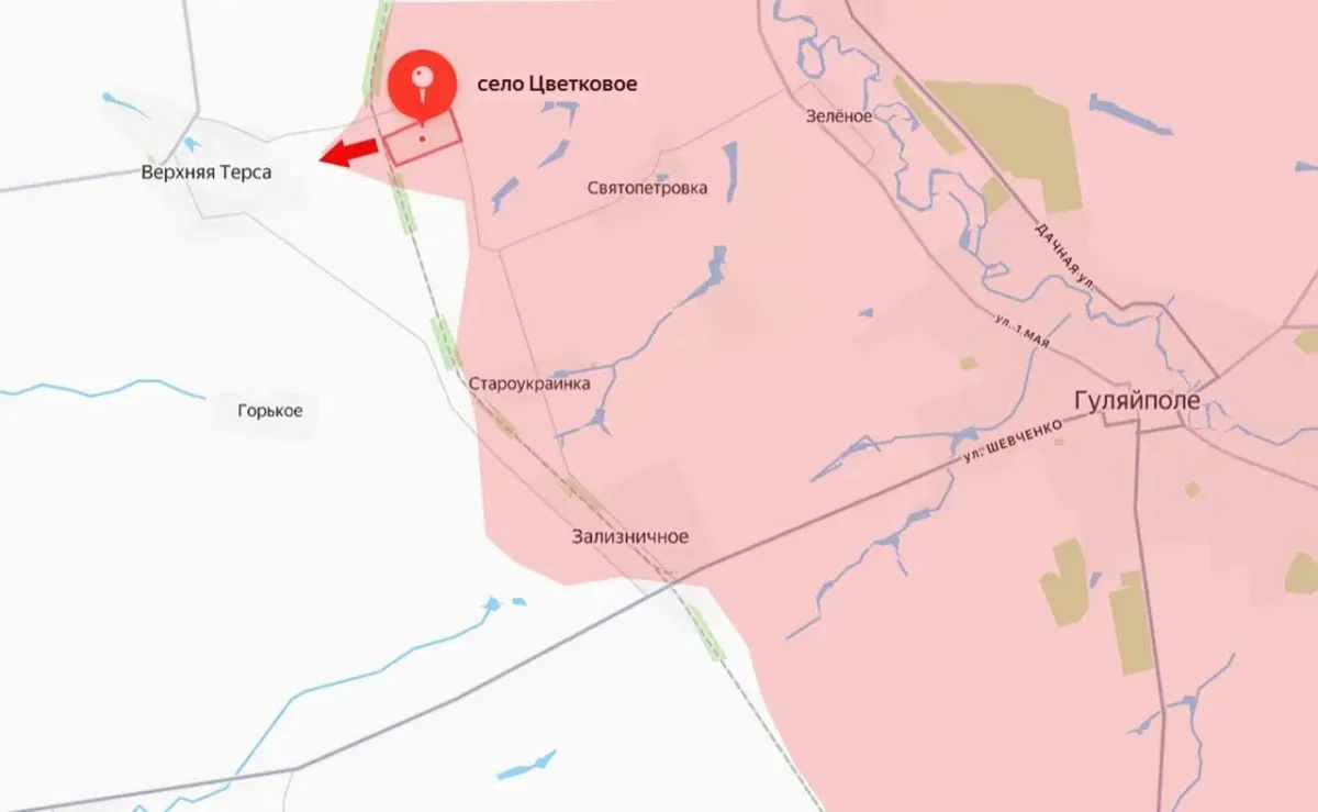 В ходе боев северо-западнее Гуляйполя ВС РФ освободили село Цветковое. Это позволяет усилить давление на оборону ВСУ в данном секторе. Одновременно с этим под контроль российских сил перешла восточная часть села Криничное. Украинские формирования были вынуждены отступить в Верхнюю Терсу.