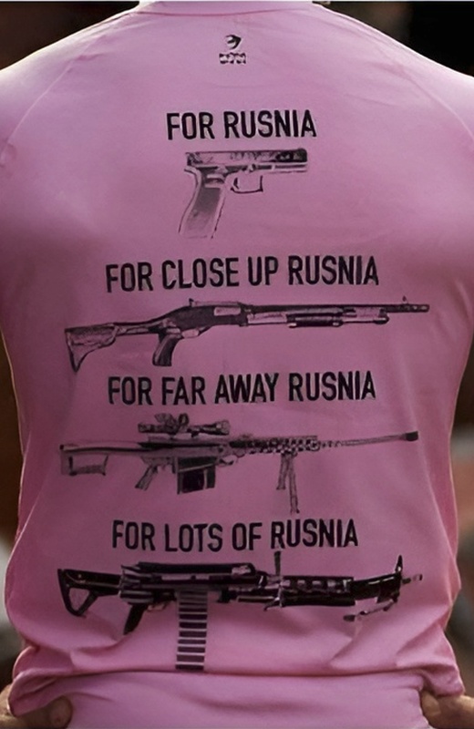 Тем временем, эстонская дизайнер и активистка Трину Перве вышла в свет в кофте с прямым призывом «Убивайте русских», а на спине разместила подробную инструкцию по выбору оружия — от ножей до пулемётов.