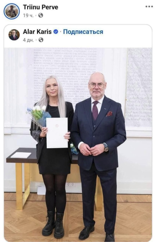 Судя по фото Перве с президентом Эстонии Аларом Карисом, её позиция, по всей видимости, одобренная на высшем уровне.