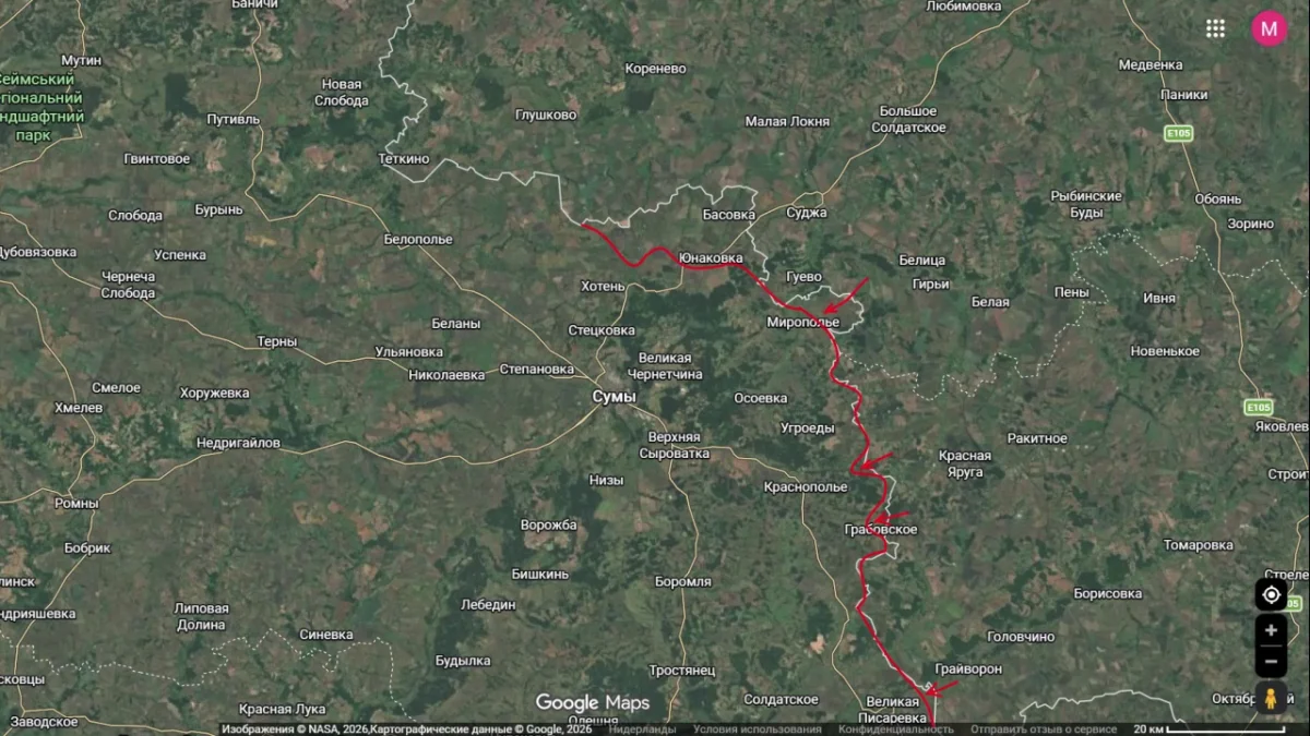 Прогноз Юрия Подоляки: Действия ВС РФ направлены на глубокий охват Сум. При сохранении текущей динамики, непосредственные бои за город могут начаться уже летом 2026 года.