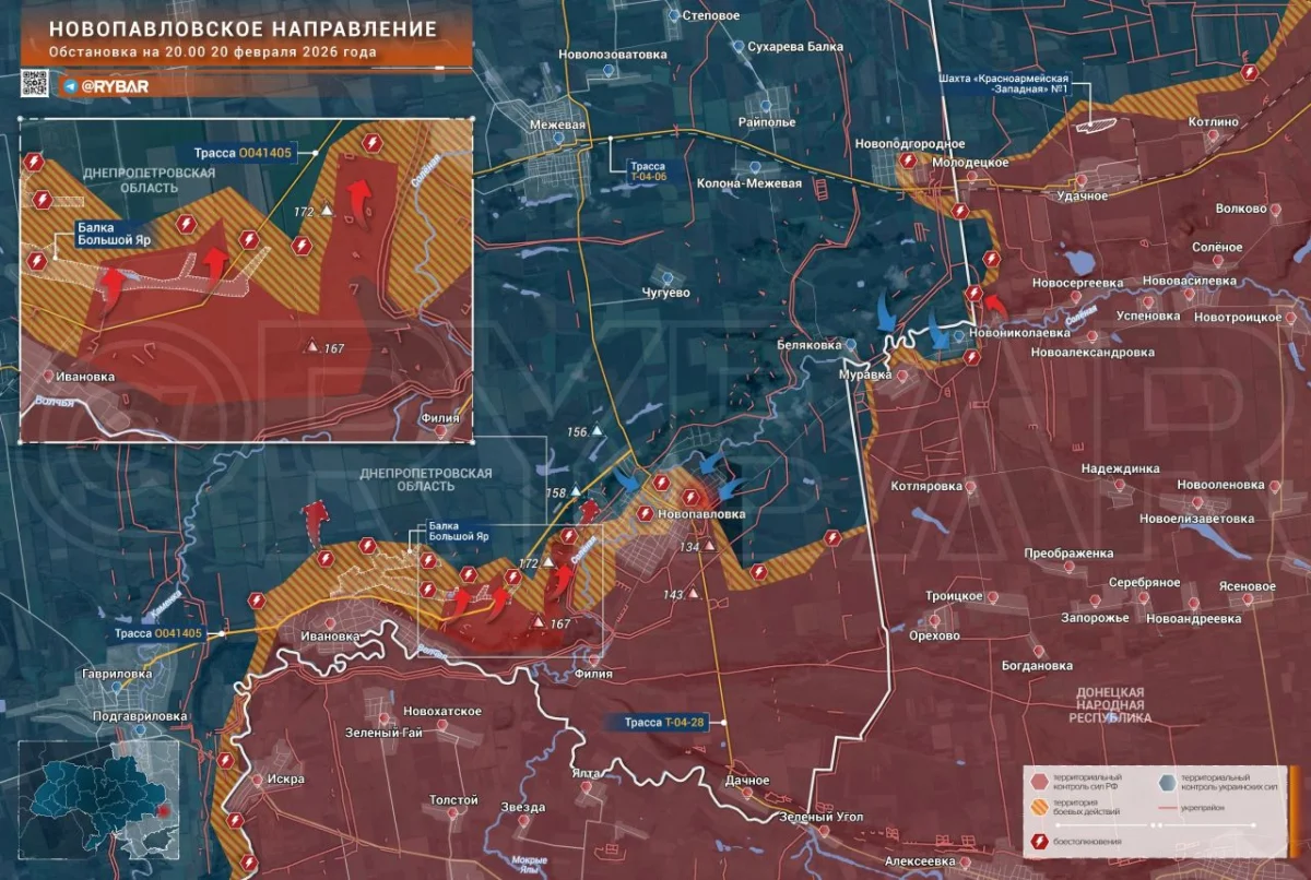 Участок, долгое время считавшийся «тихим», сейчас демонстрирует устойчивую борьбу за ключевые высоты. Российские войска контролируют южную часть спорного населенного пункта, уверенно отразив январские контратаки ВСУ между Ивановкой и Новопавловкой.