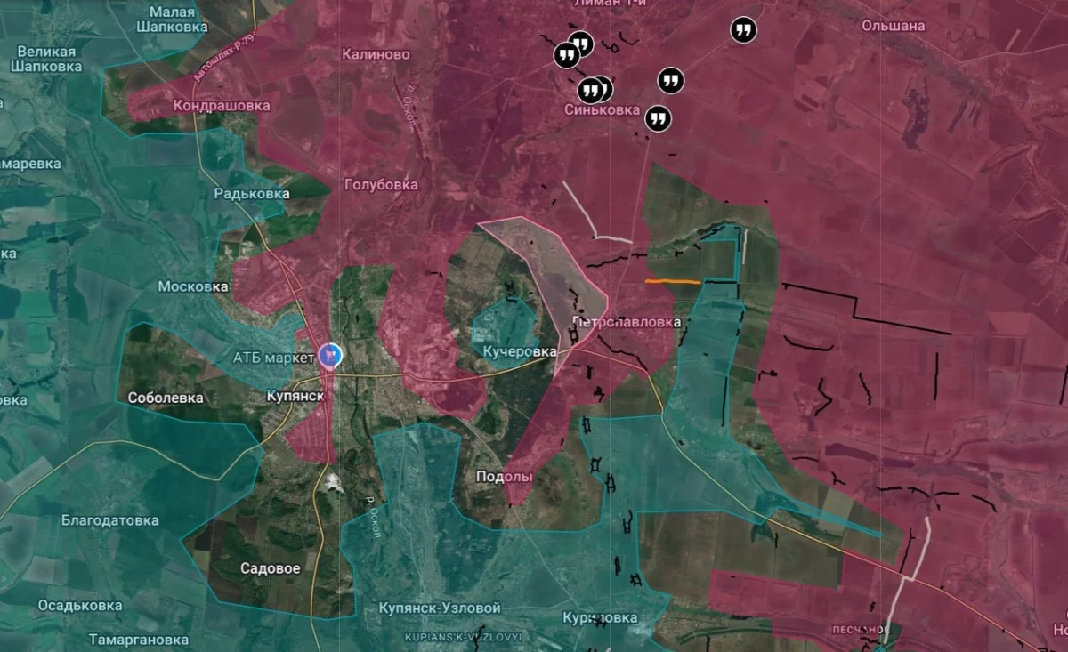 2. Восточный берег: В направлении на стратегически важный Купянск-Узловой зафиксированы ожесточенные столкновения в районе Петропавловки и населенного пункта Песчаное.