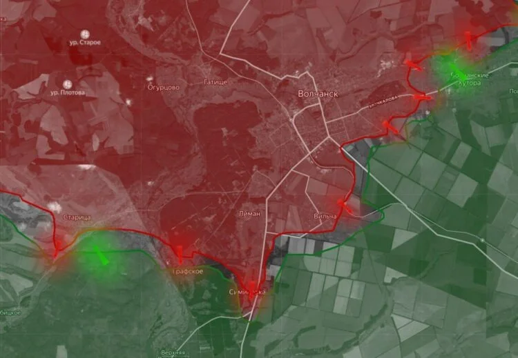 Сложная для противника ситуация складывается и на Краснолиманском направлении. В самом Красном Лимане идут ожесточенные городские бои на восточных окраинах — эпицентрами столкновений стали районы местной больницы и налоговой инспекции.
