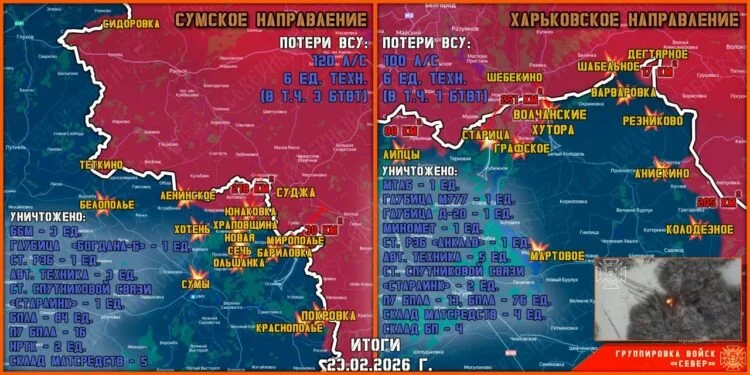 Сетевое издание «Интересная Россия» публикует актуальную сводку с линии боевого соприкосновения. К 24 февраля интенсивные боевые действия охватили практически всю линию фронта. Наиболее драматичные для украинской армии события разворачиваются на Купянском направлении, где подразделения ВСУ вынуждены экстренно оставлять позиции. Одновременно Российская армия наращивает давление в Харьковской, Запорожской и Сумской областях, а также развивает успех на ключевых участках в Донбассе.