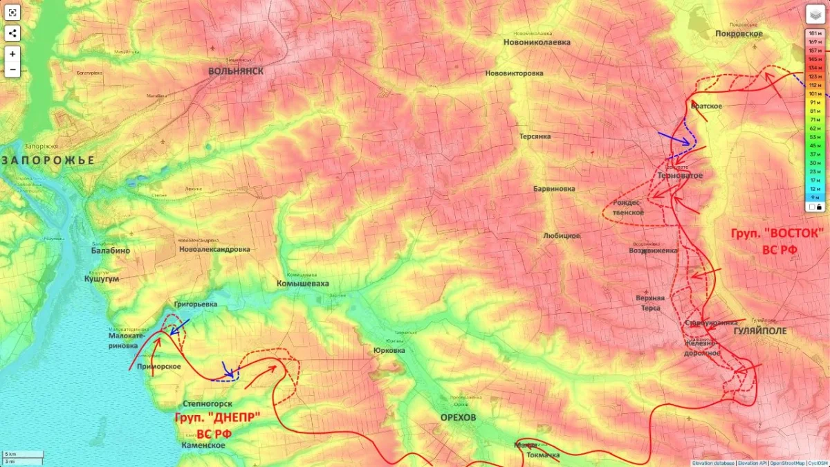 Его потеря запустила процесс стремительного «схлопывания» украинских рубежей, опиравшихся на Воздвижевку и Верхнюю Терсу. Теперь российские войска усиливают охват Орехова с северо-востока. Одновременно западнее Магдалиновки (зона ответственности группировки «Днепр») формируется плацдарм для удара на Юрковку и Камышеваху, что открывает прямую дорогу к Запорожью.