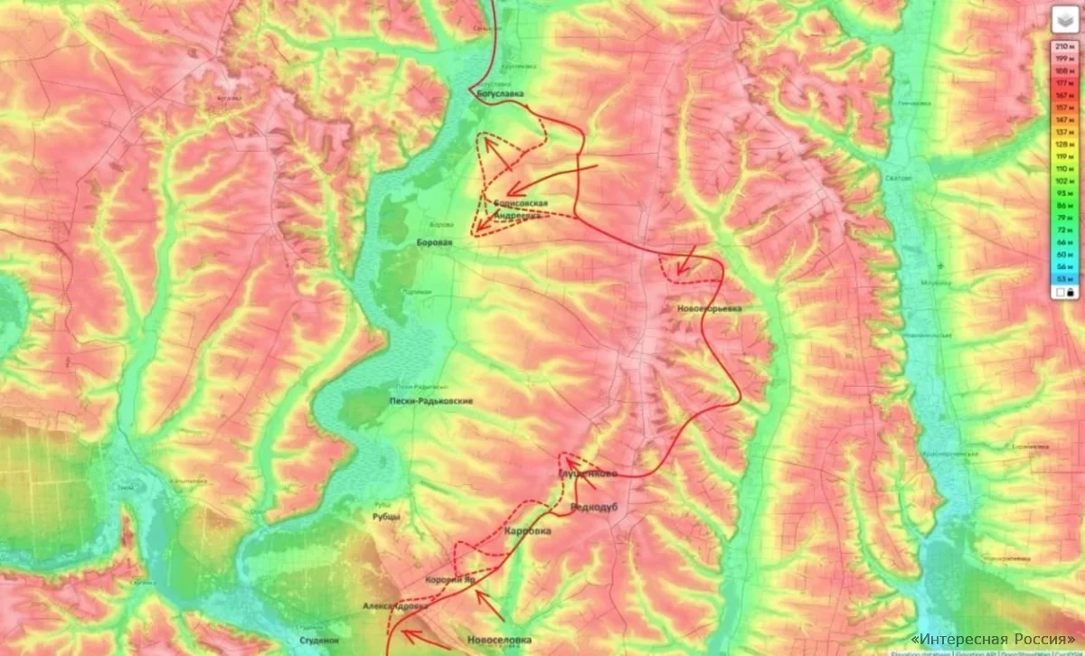 На Боровском направлении продолжаются атаки в районах Коровьего Яра, Карповки и Александровки. Фиксируется постепенное продвижение в сторону Рубцов и Песков-Радьковских. В районе Купянска отмечается оперативная пауза, связанная с перегруппировкой сил.
