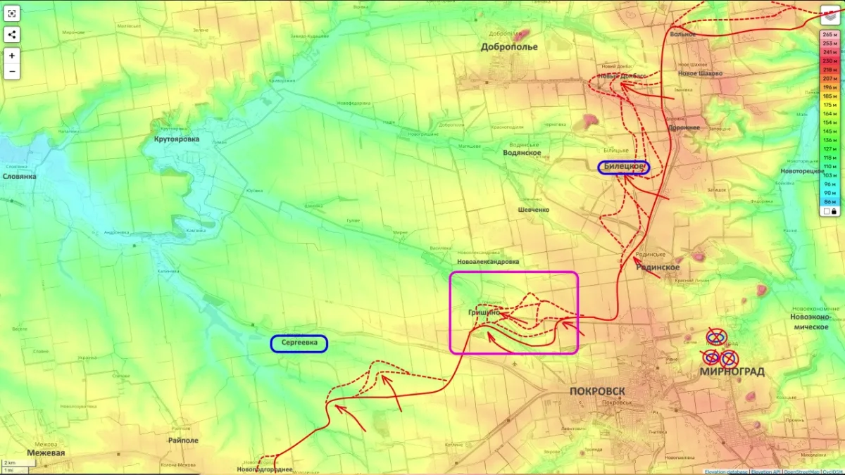 - Начинается плотное давление на Сергеевку. Опираясь на большую Покровско-Мирноградскую агломерацию, российские войска наращивают темп. Под таким давлением оборона противника рано или поздно должна дрогнуть.