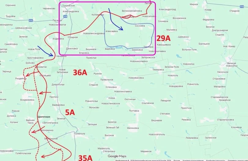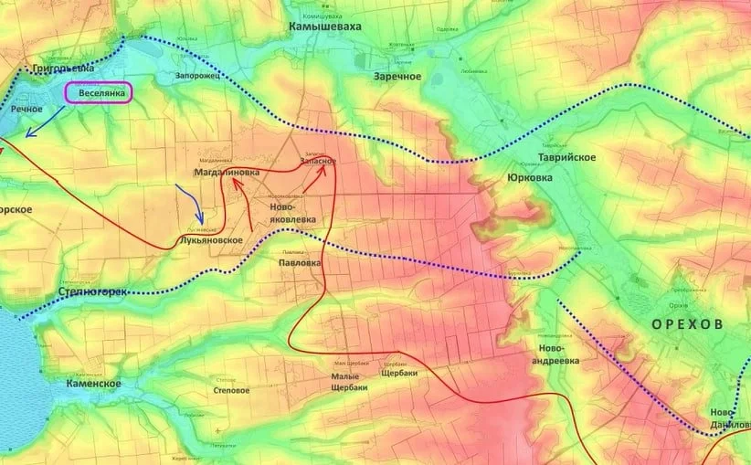 Тактический замысел командования дополняет информация военкора Тимофея Ермакова, который сообщил о начале боев за село Диброва (северо-западнее Второй Федоровки).