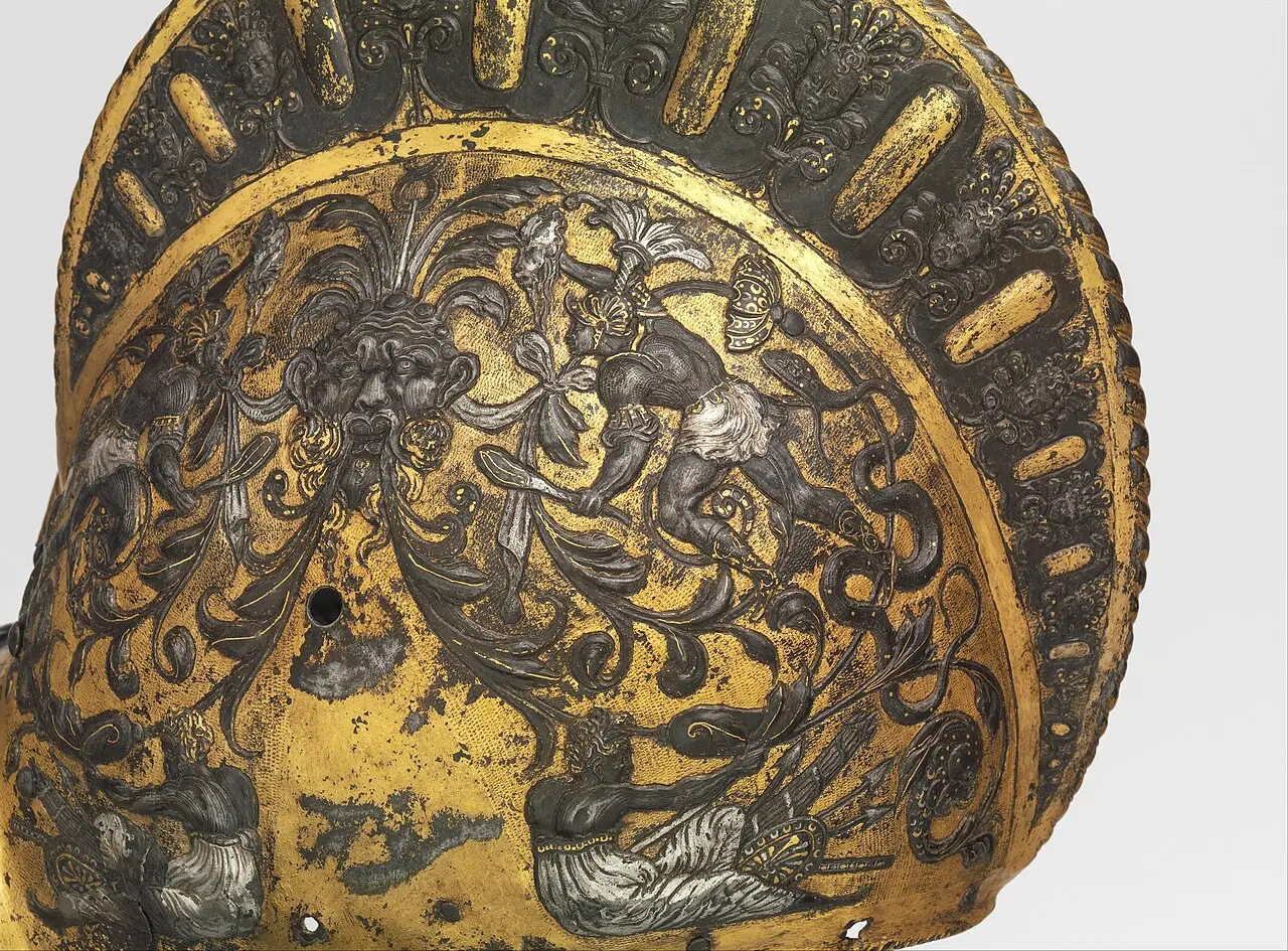 Шлем от парадного доспеха короля Генриха II (1547–1559). Метрополитен-музей, Нью-Йорк