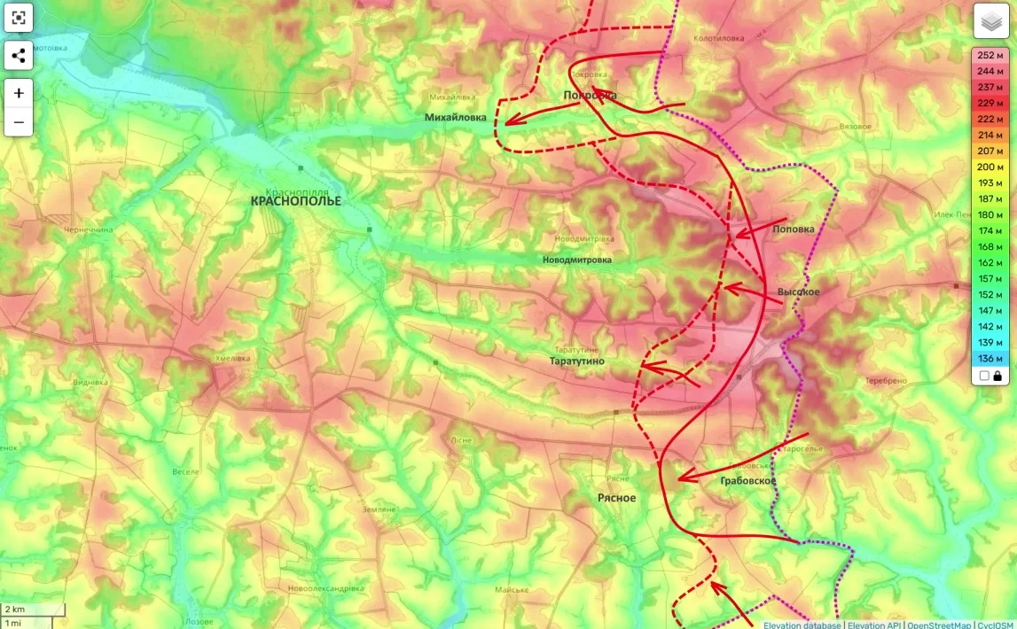 Он сообщает о боях за Михайловку и Таратутино на Краснопольском направлении, а также утверждает, что населённый пункт Сопыч в Глуховском районе полностью занят российскими подразделениями. В его оценке продвижение здесь имеет не только местное значение.