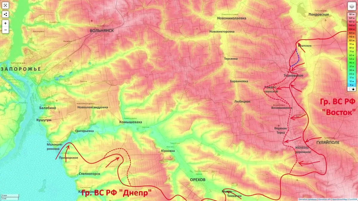 Подоляка связывает эти действия с более широкой задачей: в координации с группировкой «Восток» создать условия для будущего давления на ореховский узел обороны. По его оценке, в перспективе речь может идти о попытке охвата ореховской группировки с последующим развитием успеха в сторону Запорожья. Сама логика борьбы за рубеж Верхняя Терса — Воздвиженка — Рождественское действительно рассматривается рядом источников как часть подготовки к более крупным действиям в направлении Орехова.