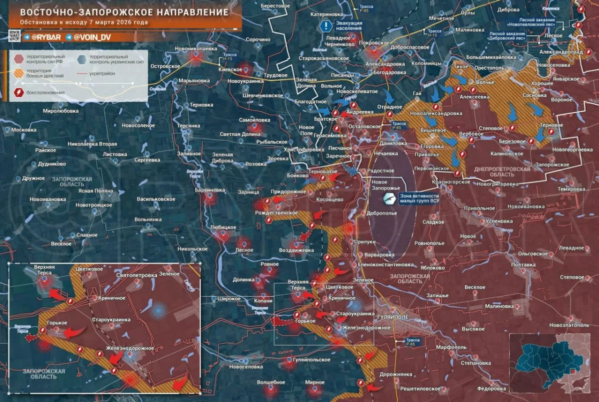 Фото: Сергей Бобылев / РИА Новости На восточном и южном участках линии соприкосновения продолжаются интенсивные боевые действия. По оперативным данным на 9 марта, Российская армия развивает наступление сразу на нескольких ключевых направлениях. Наиболее драматичные события разворачиваются на северных подступах к Славянску, где российские подразделения вплотную подошли к главной оборонительной линии ВСУ, угрожая разрезать коммуникации противника.
