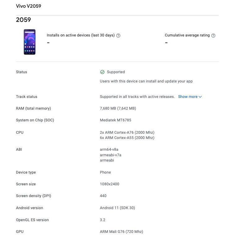 Известно, что смартфон имеет кодовое обозначение V2059. В его основу положен процессор MediaTek MT6785, более известный как Helio G90. Чип содержит восемь вычислительных ядер с тактовой частотой до 2,05 ГГц и графический ускоритель ARM Mali-G76 3EEMC4.